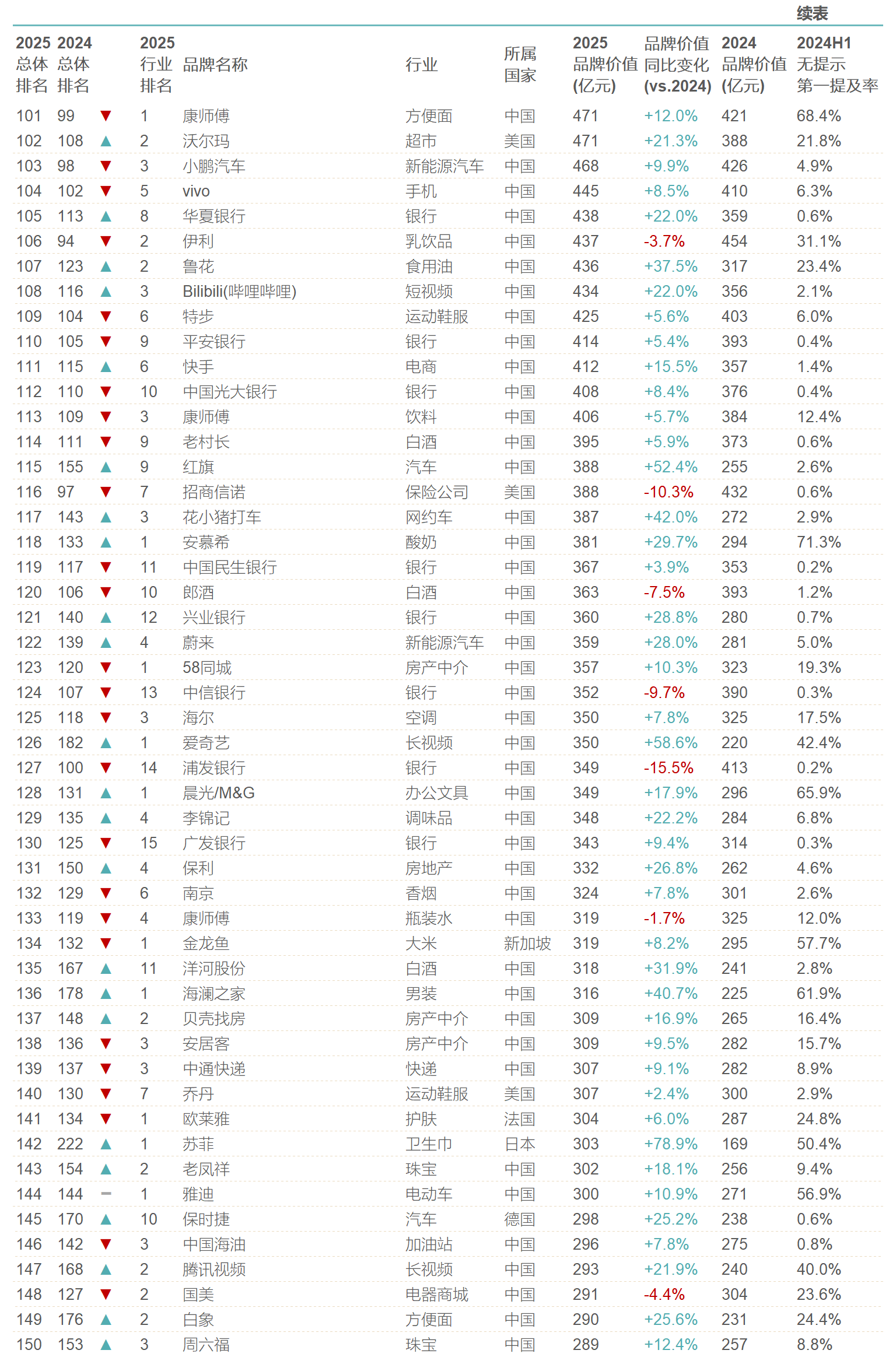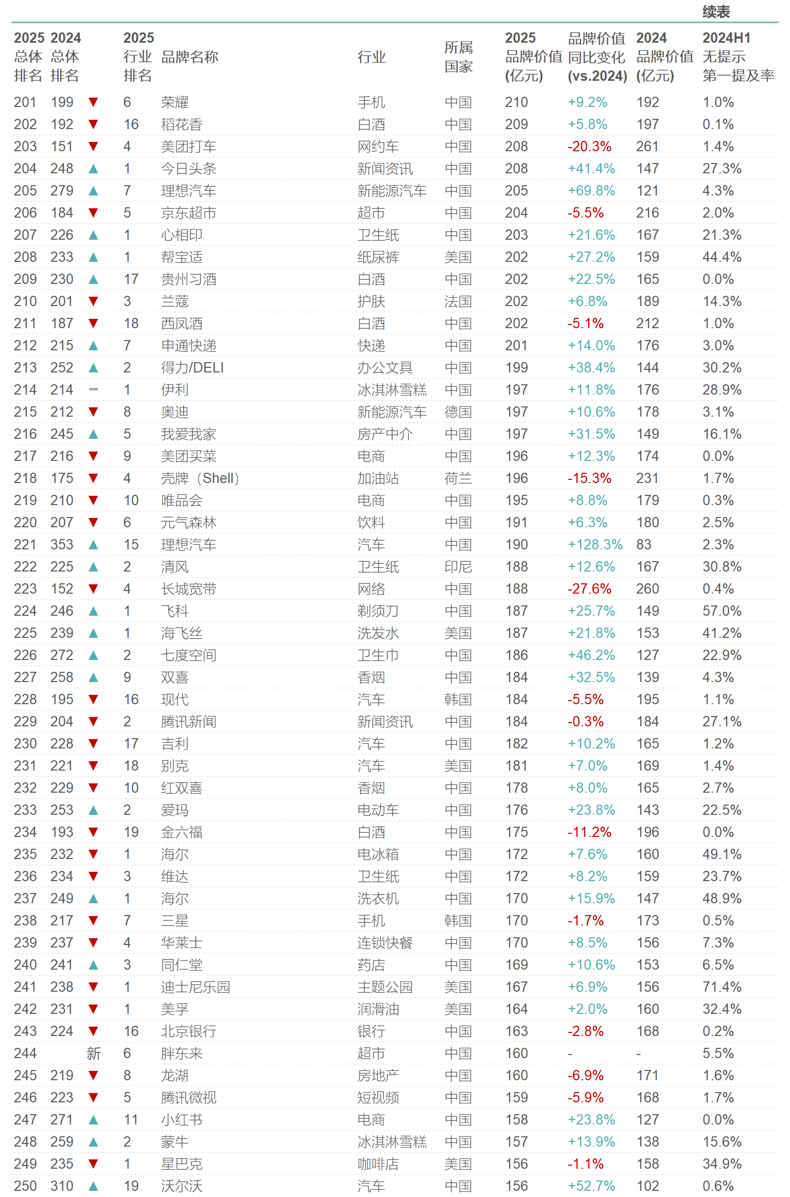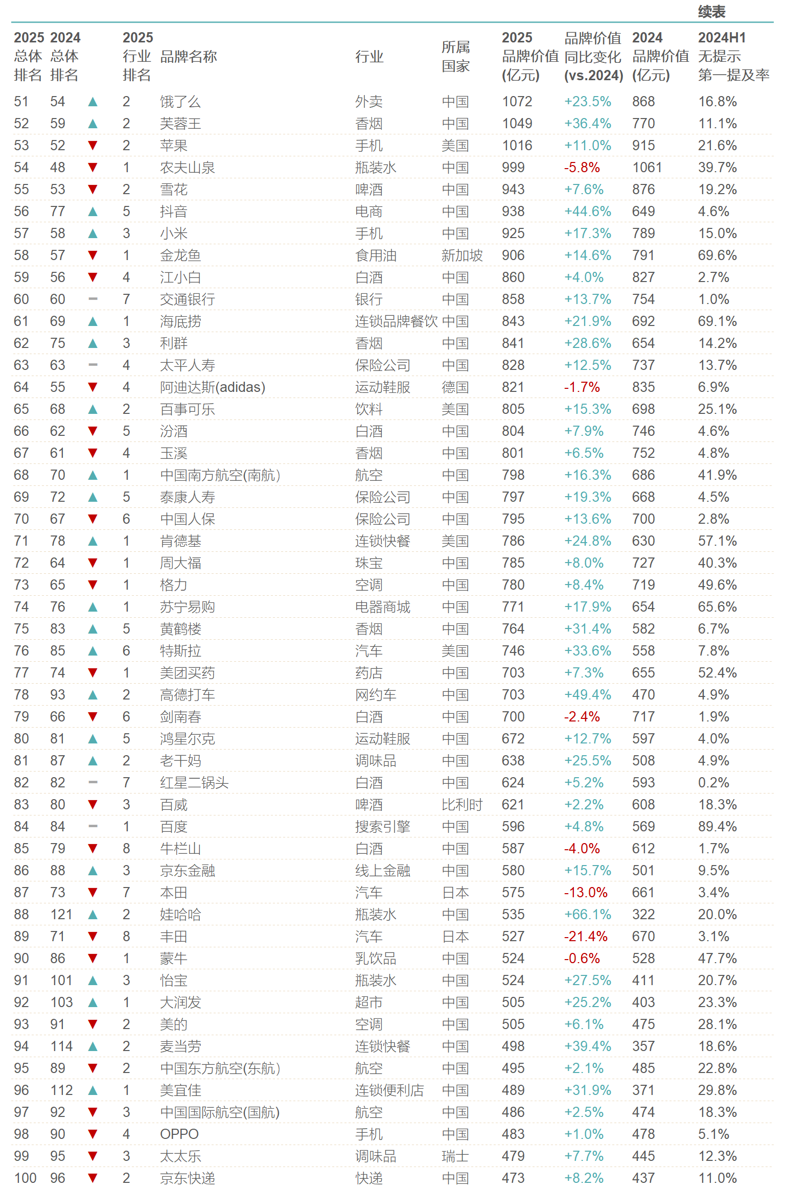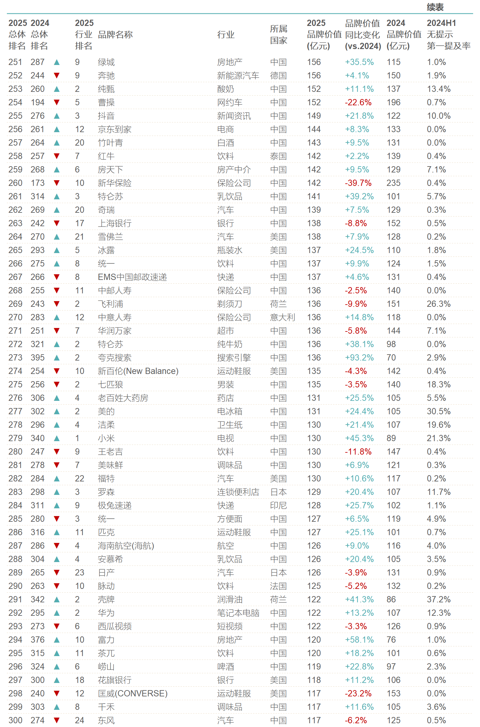 再来看看“BrandTest 2025中国消费者品牌价值”1000强榜单。